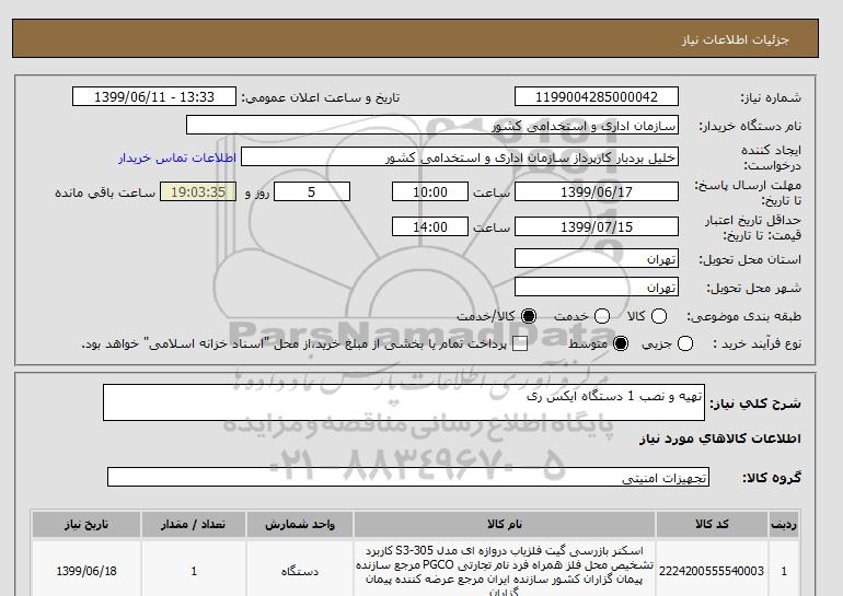 شرح کلی نیاز: تهیه و نصب 1 دستگاه ایکس ری
