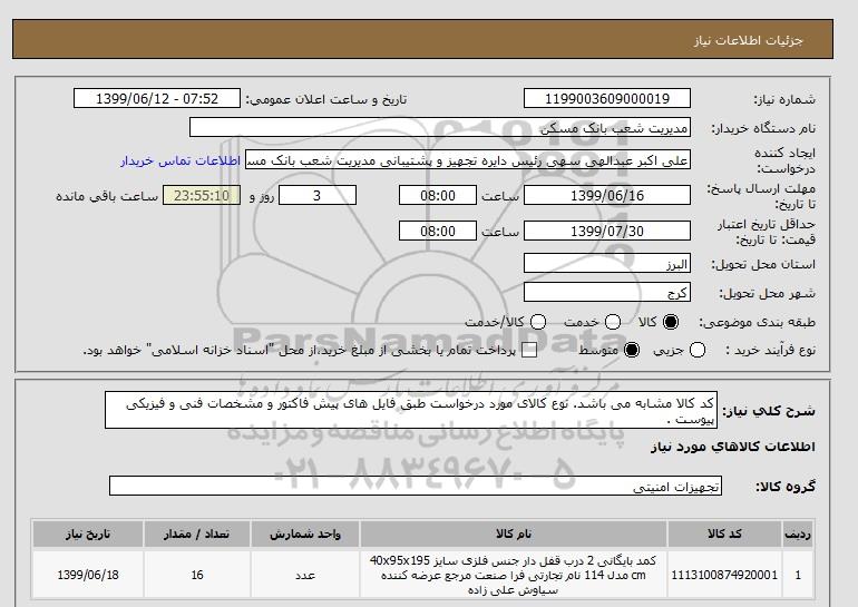 نام دستگاه خریدار:مدیریت شعب بانک مسکن