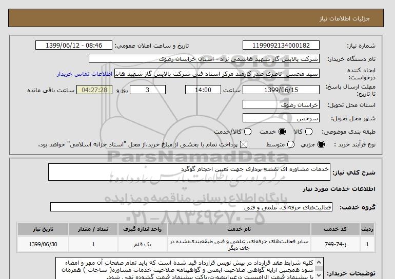 نام دستگاه خریدار:شرکت پالایش گاز شهید هاشمی نژاد - استان خراسان رضوی