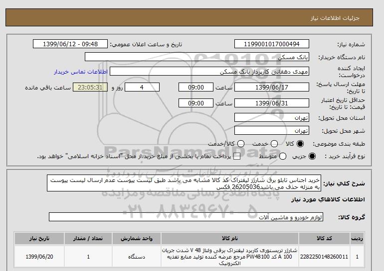 شرح کلی نیاز: خرید اجناس تابلو برق شارژر لیفتراک کد کالا مشابه می باشد طبق لیست پیوست عدم ارسال لیست پیوست به منزله حذف می باشد26205036 فکس