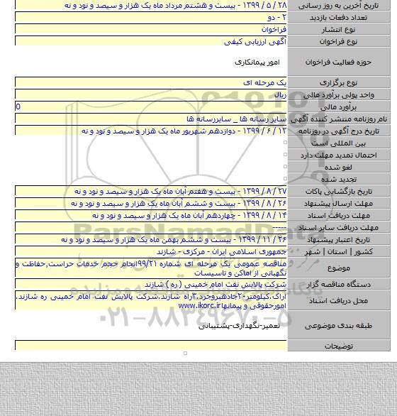مناقصه عمومی یک مرحله ای شماره ۹۹/۲۱انجام حجم خدمات حراست٫حفاظت و نگهبانی از اماکن و تاسیسات