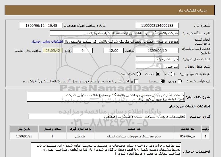 نام دستگاه خریدار:شرکت پالایش گاز شهید هاشمی نژاد - استان خراسان رضوی