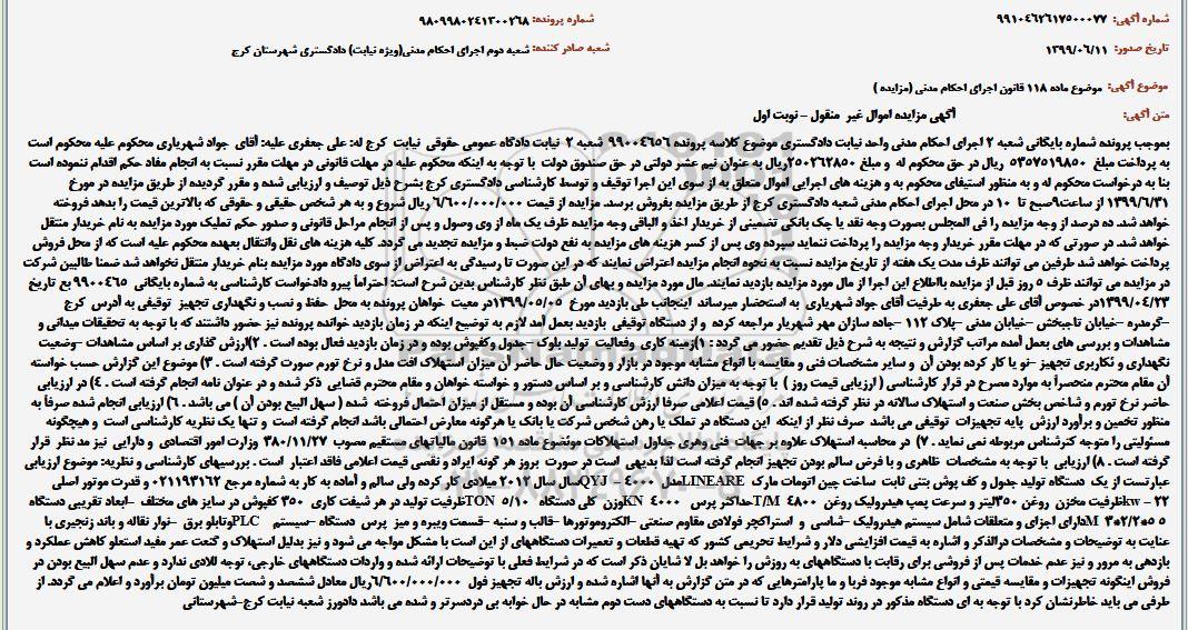 تاریخ مزایده 99.6.31 از ساعت 9 الی 10 صبح