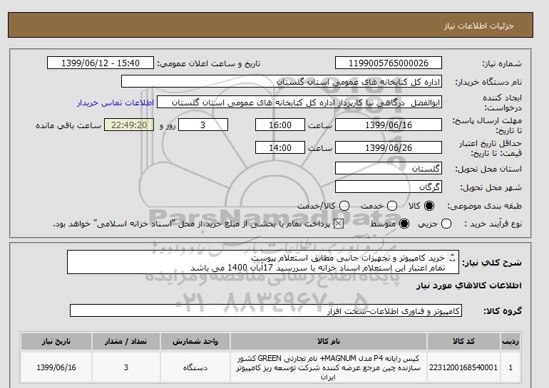 شرح کلی نیاز: خرید کامپیوتر و تجهیزات جانبی مطابق استعلام پیوست