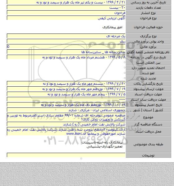 این مناقصه در تاریخ 1399/06/13 شروع و مهلت آن تا تاریخ 1399/07/05 میباشد.
