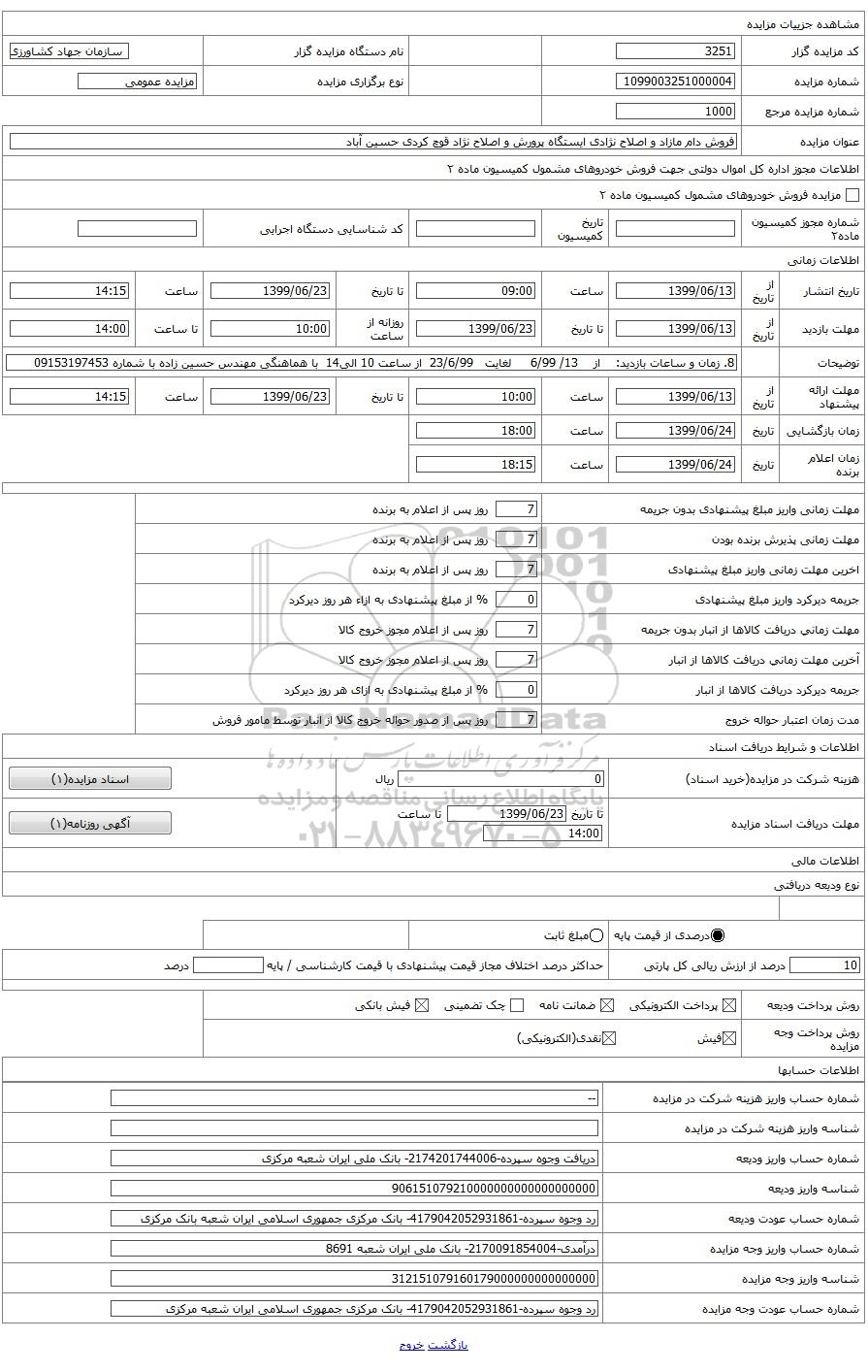 کد مزایده گزار3251نام دستگاه مزایده گزار سازمان جهاد کشاورزی