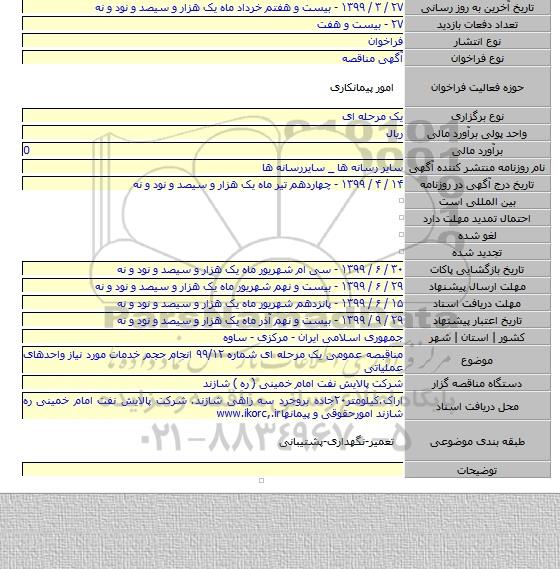 مناقبصه عمومی یک مرحله ای شماره ۹۹/۱۲ انجام حجم خدمات مورد نیاز واحدهای عملیاتی