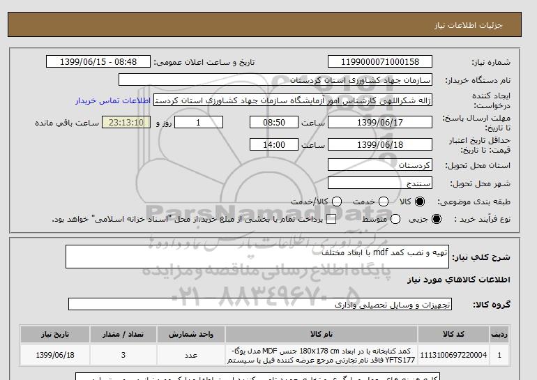 نام دستگاه خریدار:سازمان جهاد کشاورزی استان کردستان