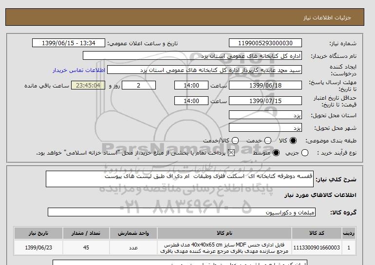 نام دستگاه خریدار:اداره کل کتابخانه های عمومی استان یزد