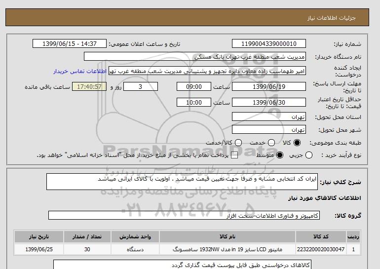 نام دستگاه خریدار:مدیریت شعب منطقه غرب تهران بانک مسکن