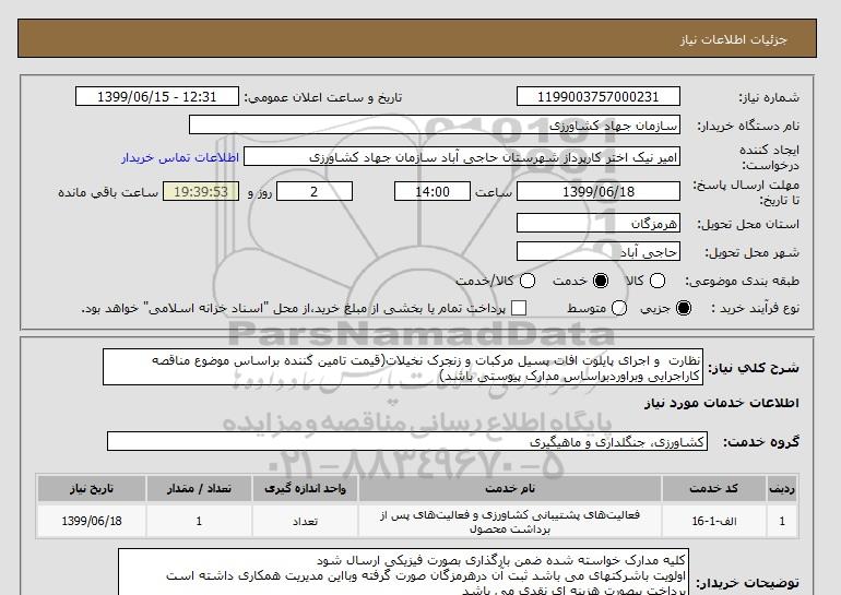 شرح کلی نیاز: نظارت و اجرای پایلوت افات پسیل مرکبات و زنجرک نخیلات(قیمت تامین کننده براساس موضوع مناقصه کاراجرایی وبراوردبراساس مدارک پیوستی باشد)