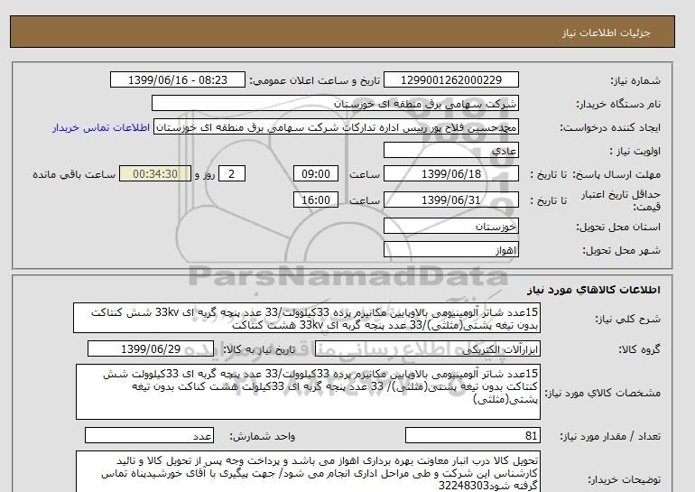 نام دستگاه خریدار:شرکت سهامی برق منطقه ای خوزستان