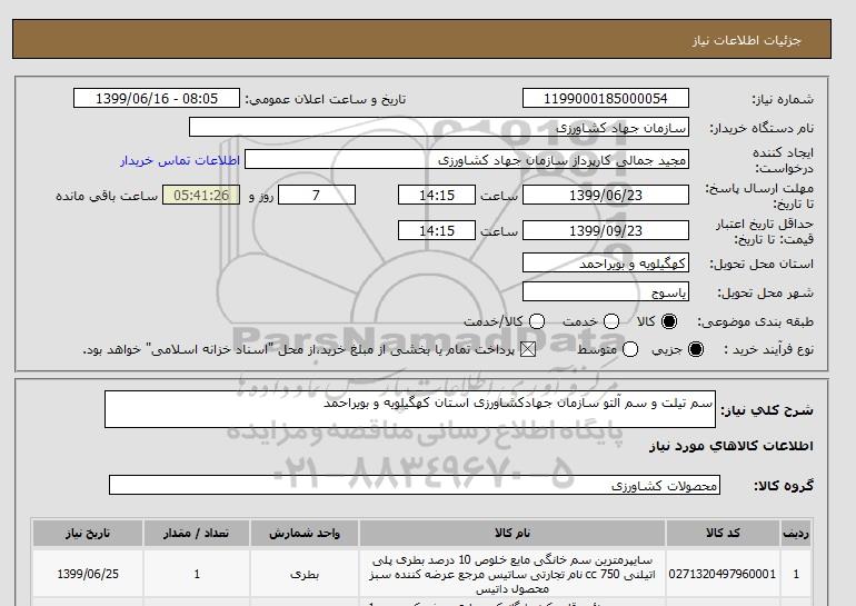 شرح کلی نیاز: سم تیلت و سم آلتو سازمان جهادکشاورزی استان کهگیلویه و بویراحمد