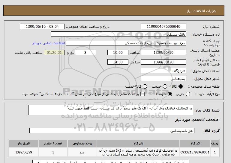 استعلام در اتوماتیک فولادی رول آب به ازای هر متر مربع"ایران کد مشابه است فقط جهت ثبت", استعلام در اتوماتیک فولادی رول آب به ازای هر متر مربع"ایران کد مشابه است فقط جهت ثبت"