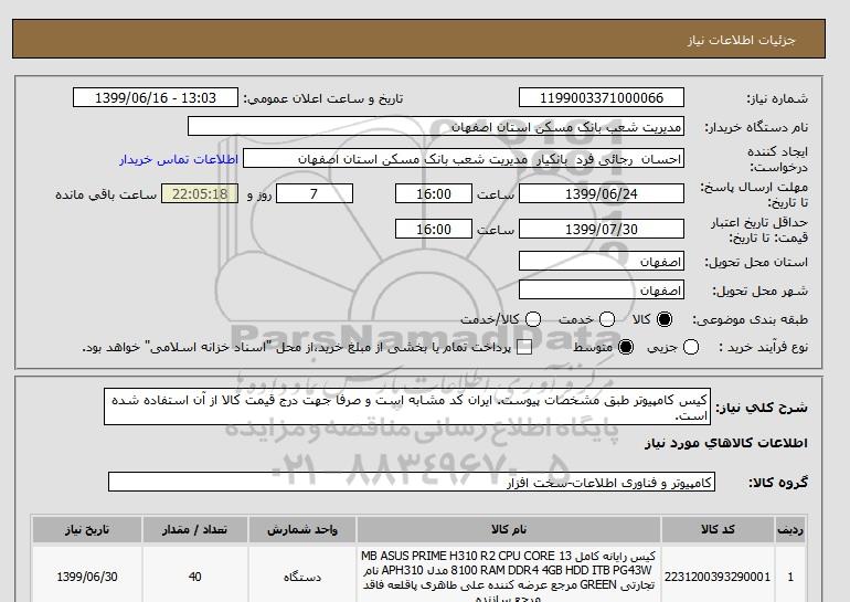 نام دستگاه خریدار:مدیریت شعب بانک مسکن استان اصفهان