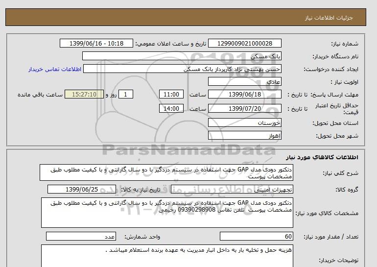 مشخصات کالای مورد نیاز: دتکتور دودی مدل GAP جهت استفاده در سیستم دزدگیر با دو سال گارانتی و با کیفیت مطلوب طبق مشخصات پیوست تلفن تماس 09390298908 رحیمی
