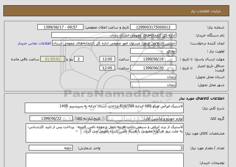 نام دستگاه خریدار:اداره کل کتابخانه های عمومی استان زنجان