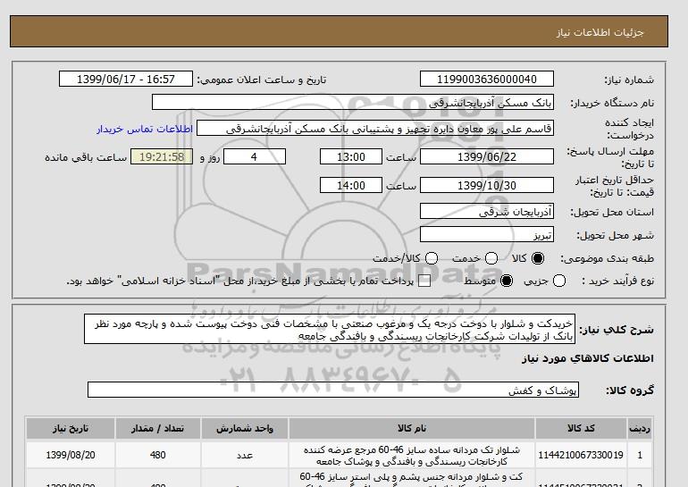 نام دستگاه خریدار:بانک مسکن آذربایجانشرقی
