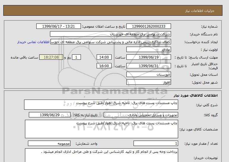 مشخصات کالای مورد نیاز: چاپ مستندات پست های برق ناحیه شرق اهواز/طبق شرح پیوست