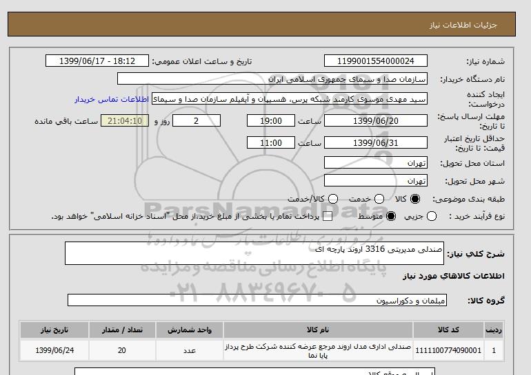 شرح کلی نیاز: صندلی مدیریتی 3316 اروند پارچه ای