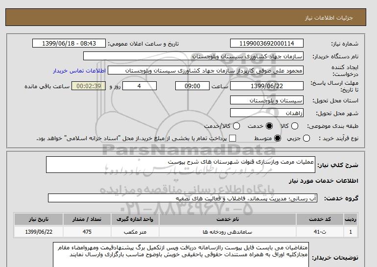 شرح کلی نیاز: عملیات مرمت وبازسازی قنوات شهرستان های شرح پیوست