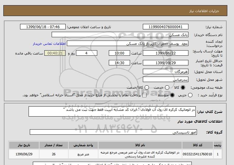 شرح کلی نیاز: در اتوماتیک کرکره ای رول آب فولادی " ایران کد مشابه است فقط جهت ثبت می باشد "