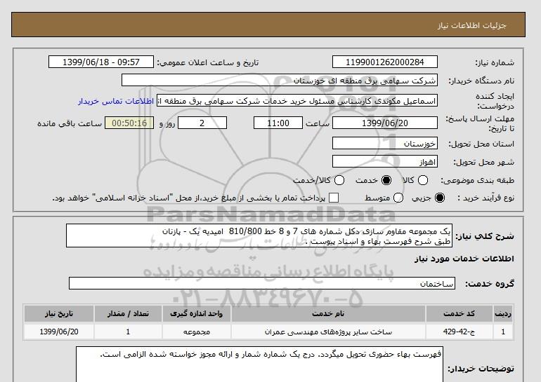شرح کلی نیاز: یک مجموعه مقاوم سازی دکل شماره های 7 و 8 خط 810/800 امیدیه یک - پازنان