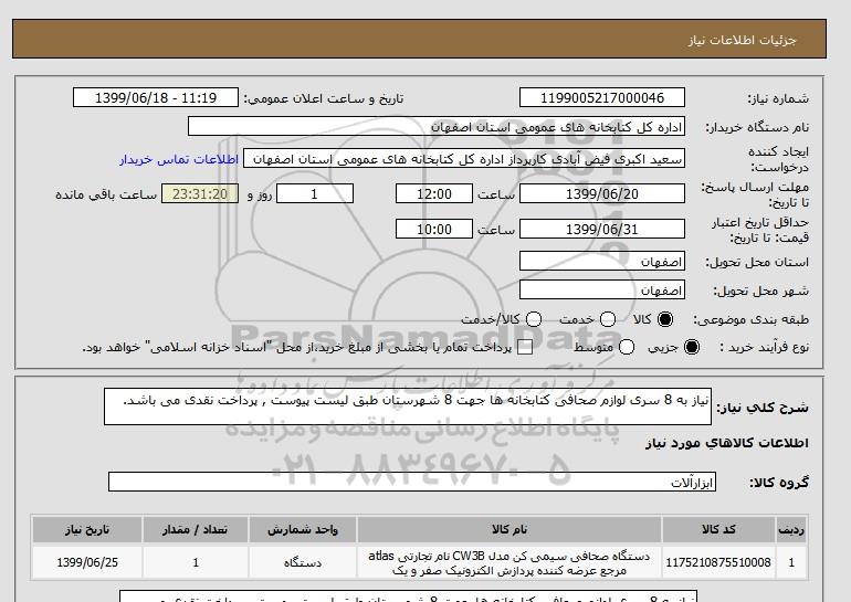 نام دستگاه خریدار:اداره کل کتابخانه های عمومی استان اصفهان