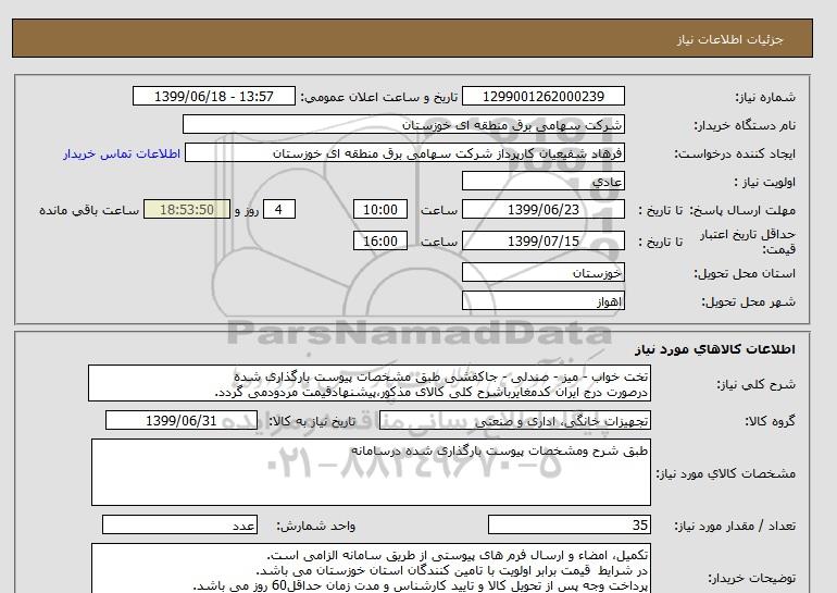 نام دستگاه خریدار:شرکت سهامی برق منطقه ای خوزستان