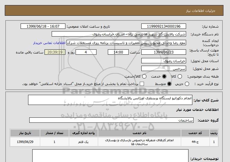 شرح کلی نیاز: انجام دکوراتیو ایستگاه پرستاری اورژانس پالایشگاه