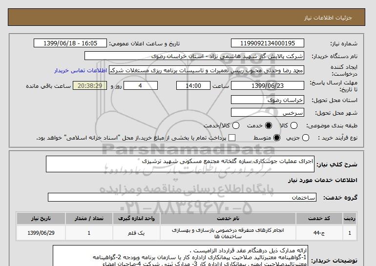 نام دستگاه خریدار:شرکت پالایش گاز شهید هاشمی نژاد - استان خراسان رضوی