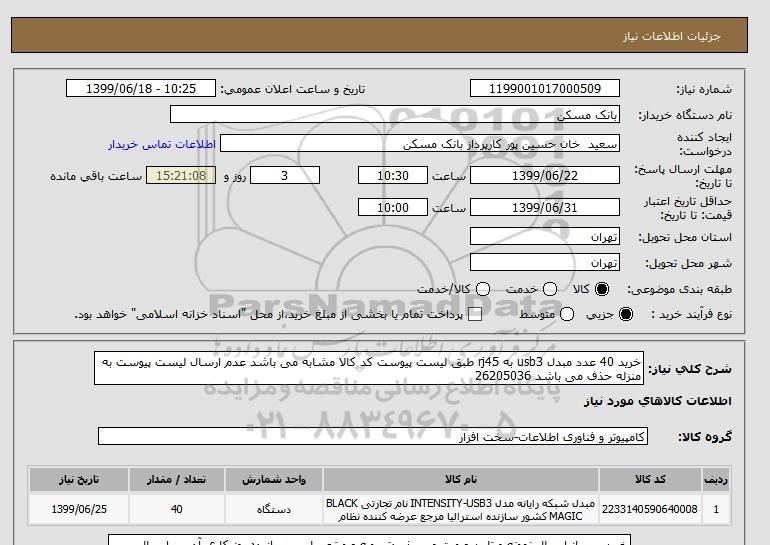 شرح کلی نیاز: خرید 40 عدد مبدل usb3 به rj45 طبق لیست پیوست کد کالا مشابه می باشد عدم ارسال لیست پیوست به منزله حذف می باشد 26205036
