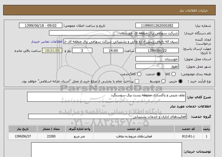 شرح کلی نیاز: علف چینی و پاکسازی محوطه پست برق سوسنگرد
