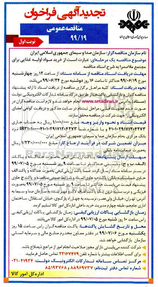 - نام سازمان مناقصه گزار: سازمان صدا و سیمای جمهوری اسلامی ایران
