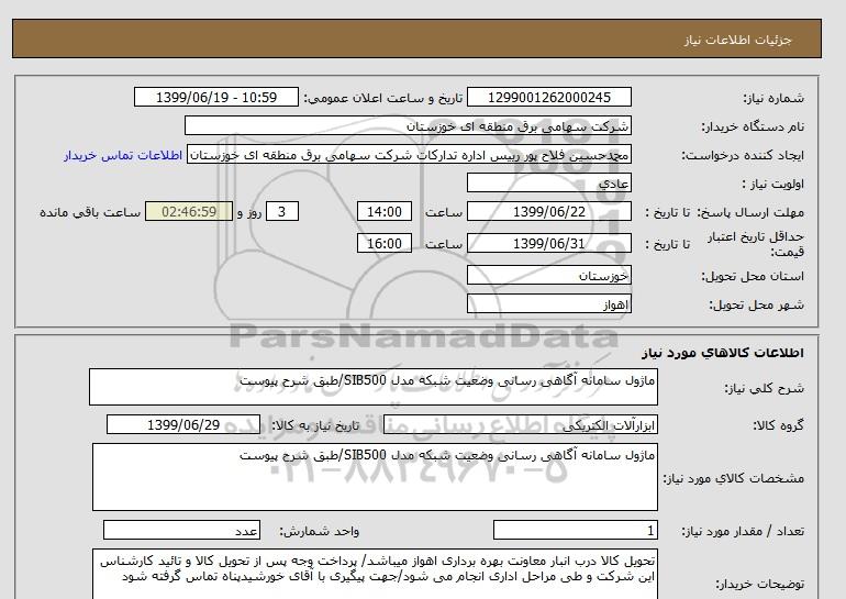 نام دستگاه خریدار:شرکت سهامی برق منطقه ای خوزستان