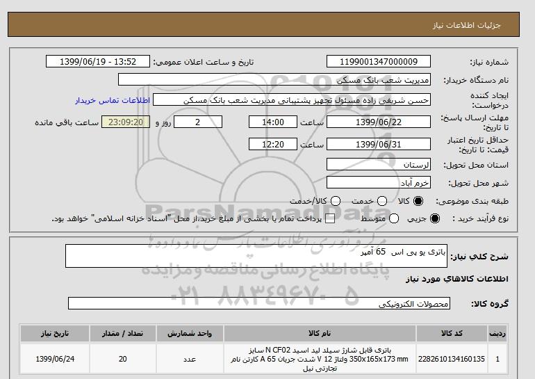شرح کلی نیاز: باتری یو پی اس 65 آمپر