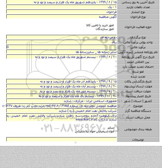 اراک.کیلومتر۲۰جاده بروجردسه راهی شازند.شرکت پالایش نفت امام خمینی ره شازند تدارکات کالاwww.ikorc.ir