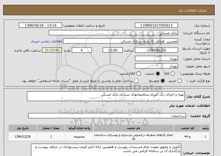 شرح کلی نیاز: تهیه و اجرای رنگ آمیزی ساختمانهای ستادی بانک مسکن