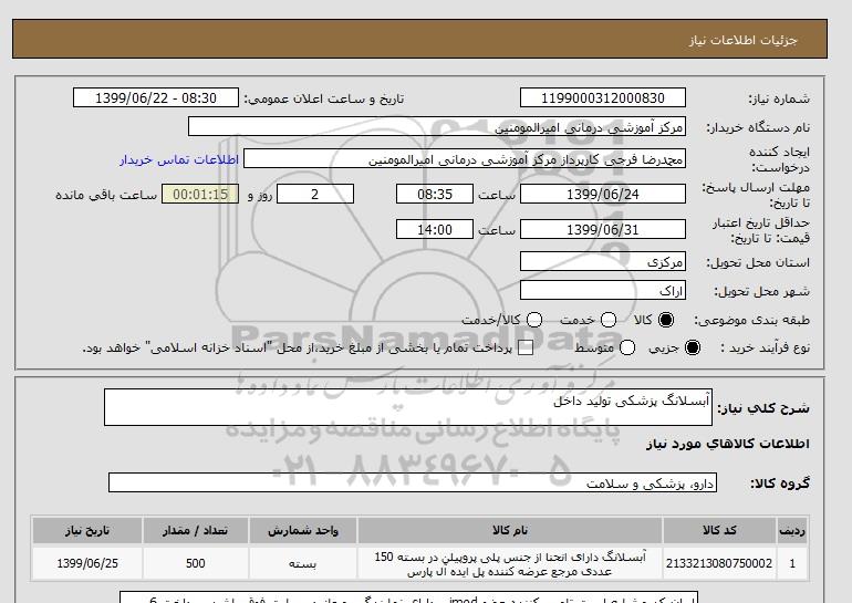 شرح کلی نیاز: آبسلانگ پزشکی تولید داخل
