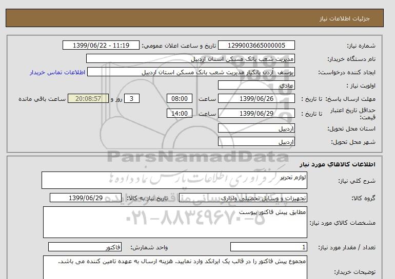 نام دستگاه خریدار:مدیریت شعب بانک مسکن استان اردبیل