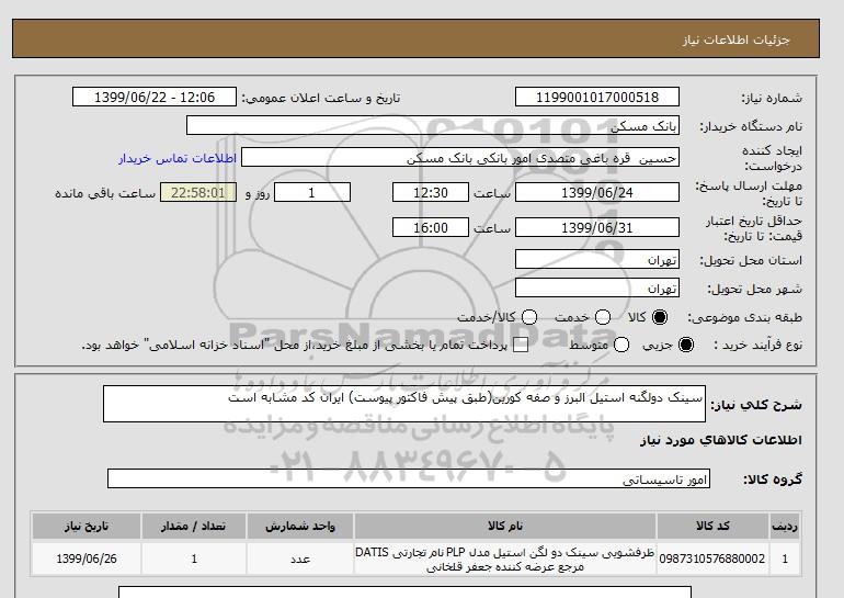شرح کلی نیاز: سینک دولگنه استیل البرز و صفه کورین(طبق پیش فاکتور پیوست) ایران کد مشابه است