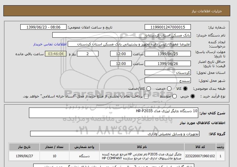 شرح کلی نیاز: 10 دستگاه چاپگر لیزری مدل HP P2035