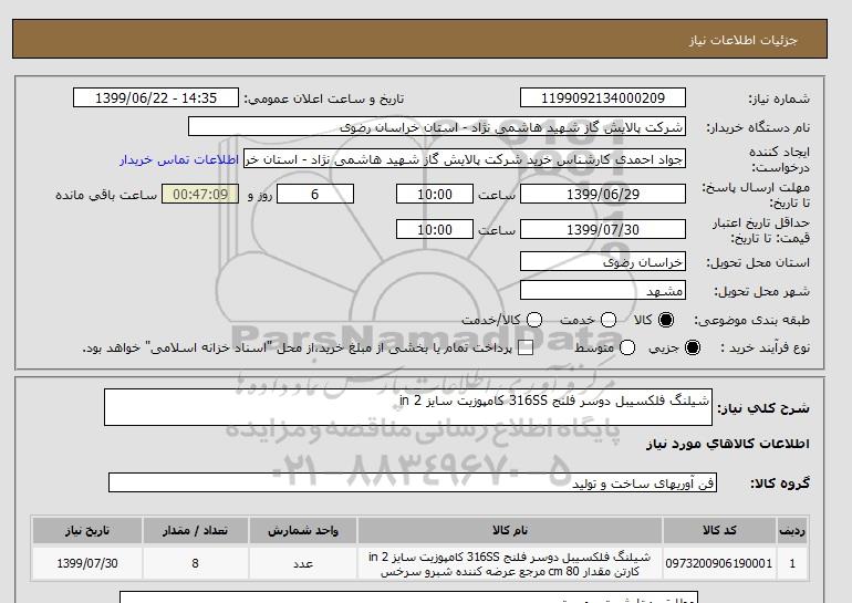 نام دستگاه خریدار:شرکت پالایش گاز شهید هاشمی نژاد - استان خراسان رضوی