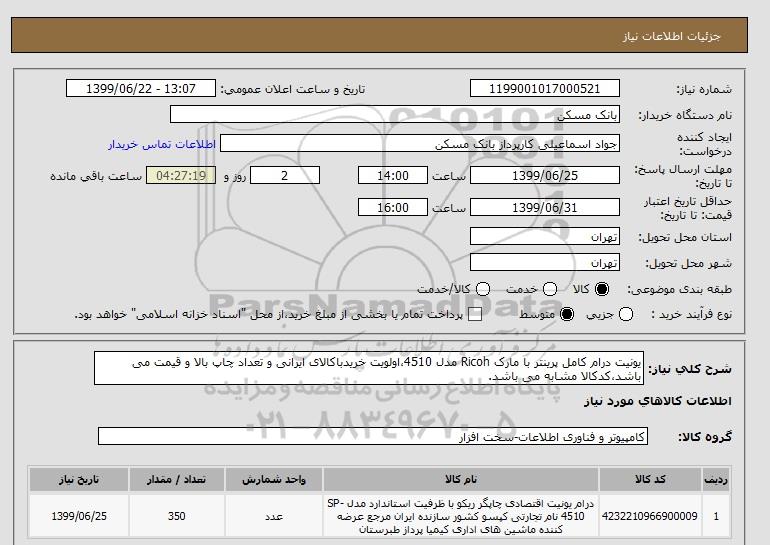 شرح کلی نیاز: یونیت درام کامل پرینتر با مارک Ricoh مدل 4510،اولویت خریدباکالای ایرانی و تعداد چاپ بالا و قیمت می باشد،کدکالا مشابه می باشد.