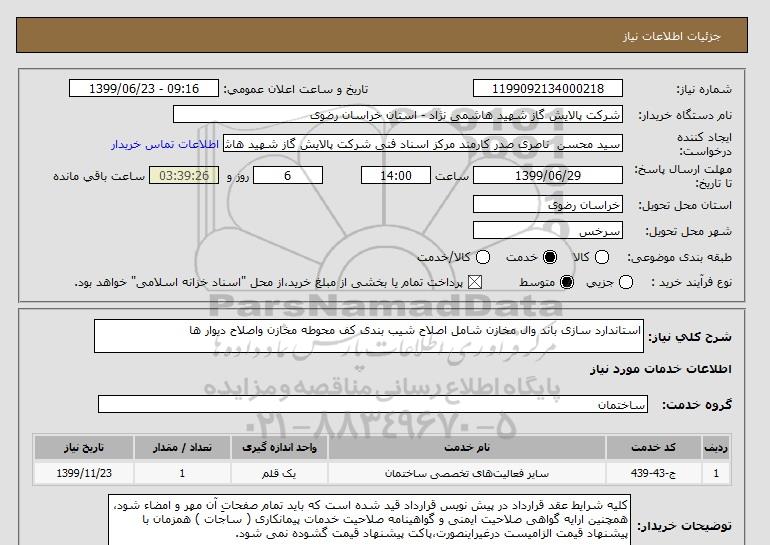 نام دستگاه خریدار:شرکت پالایش گاز شهید هاشمی نژاد - استان خراسان رضوی