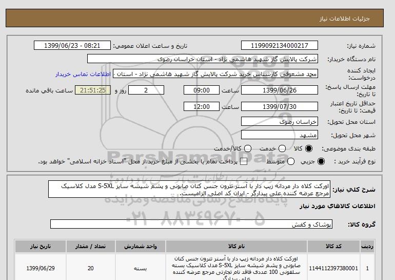 نام دستگاه خریدار:شرکت پالایش گاز شهید هاشمی نژاد - استان خراسان رضوی