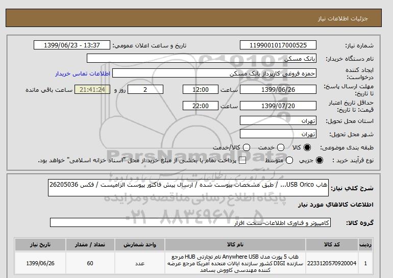 شرح کلی نیاز: هاب USB Orico... / طبق مشخصات پیوست شده / ارسال پیش فاکتور پیوست الزامیست / فکس 26205036