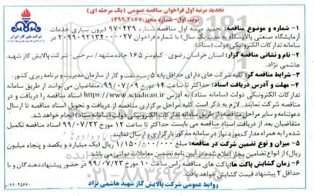 خدمات آزمایشگاه صنعتی پالایشگاه به مدت یک سال با شماره فراخوان