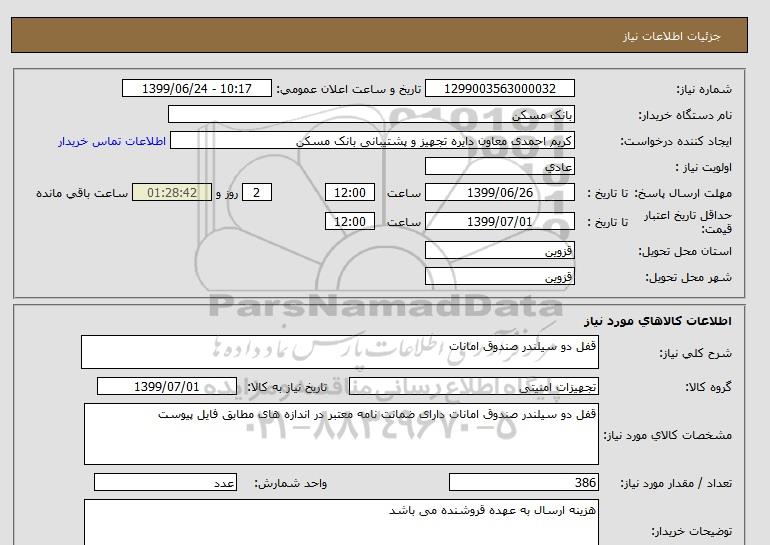 مشخصات کالای مورد نیاز: قفل دو سیلندر صندوق امانات دارای ضمانت نامه معتبر در اندازه های مطابق فایل پیوست