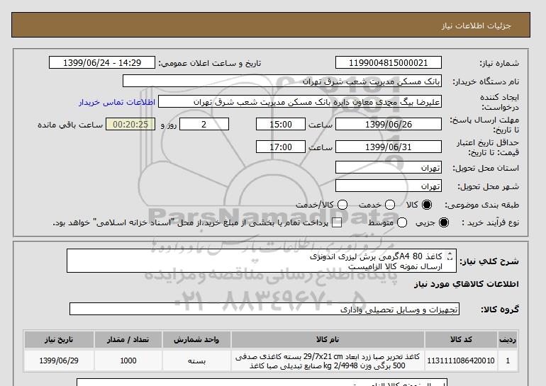 نام دستگاه خریدار:بانک مسکن مدیریت شعب شرق تهران